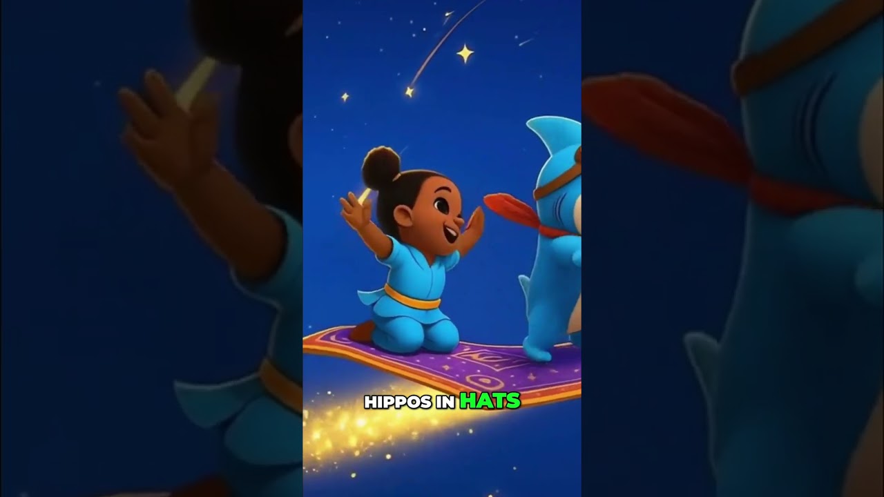 A rainbow blur gives way to a candy castle and talking tree. Elephants dance, hippos don hats, and the carpet grooves to funky rhythms. Stars circle high above. #Rainbow #CandyCastle #FunkyMoves #KidsContent