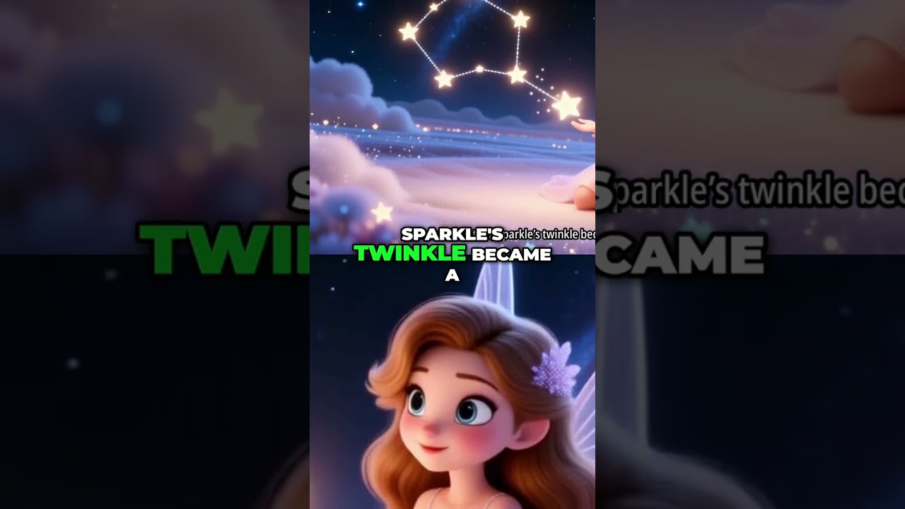 Sparkle, a cheerful cartoon fairy, encourages other stars in the constellation to follow their dreams and shine brightly. Inspiring magic for all. #FairyTales #CartoonMagic #DreamBig #ShineBright
